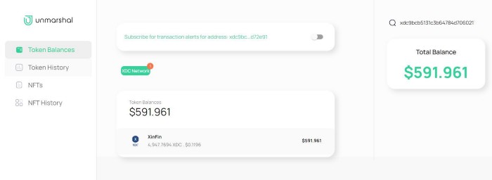 Unmarshal 익스플로러는 XDC 체인과 원활히 통합해 XDC 체인에서 지갑을 사용하는 사용자가 당사의 익스플로러를 이용해 dApp에 접속하고 자산 및 트랜잭션에 액세스할 수 있게 합니다.