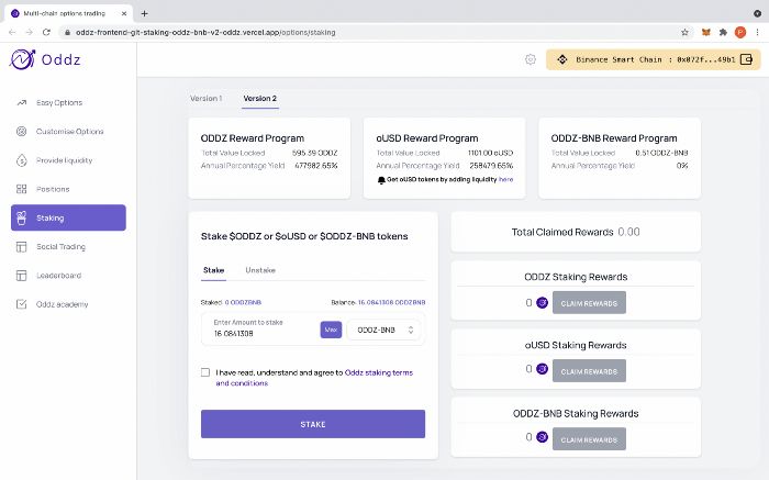 Oddz 플랫폼에 유동성을 제공한 뒤 LP 토큰을 받게 됩니다. ODDZ 보상을 획득하기 위해, LP 토큰을 스테이크해야 합니다.