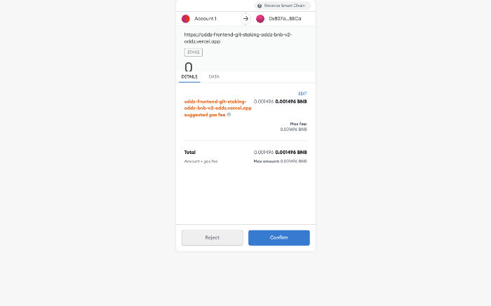 트랜잭션이 승인되었으며 당신은 이제 Oddz 플랫폼에 $ODDZ - $BNB를 스테이했습니다.