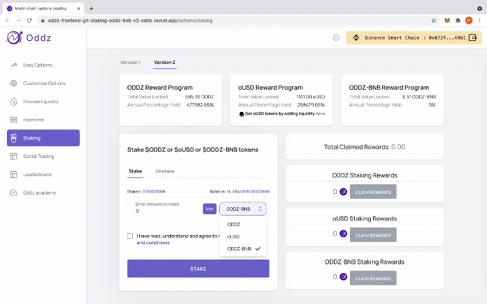 🎉 이제 $ODDZ를 획득하기 위해 성공적으로 $ODDZ - $BNB LP 토큰 스테이킹을 완료했습니다.