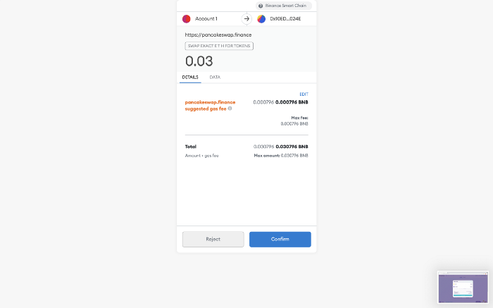 주의: PancakeSwap에서 지갑을 연결할 때 Metamask를 선택하는 경우, 네트워크를 바이낸스 스마트 체인으로 변경하시기 바랍니다.