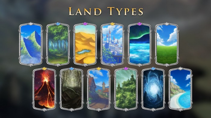각 티어는 숲, 평원, 산, 해안, 화산, 빙하, 성, 사막, 폐허, 동굴, 마을, 늪의 12가지 유형의 랜드로 구성됩니다(랜드 유형은 무작위로 배포됩니다).