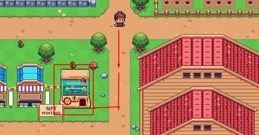 스텝 5 - 맵의 하단으로 이동하면 왼쪽에 NFT 민팅 머신이 나타납니다.