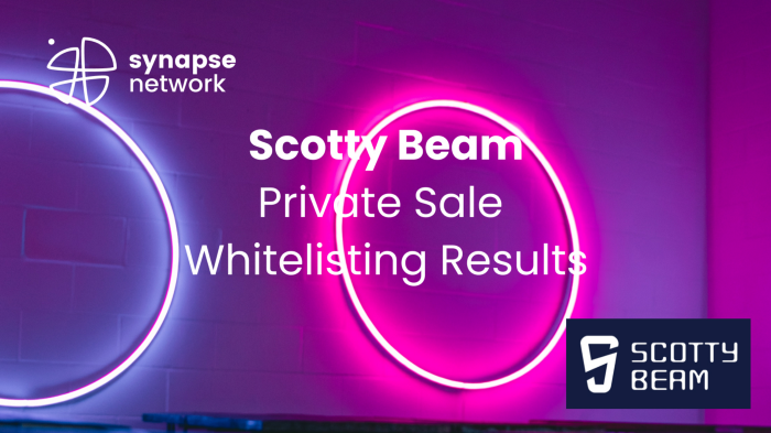 본 포스팅은 < 원본 : Scotty Beam Private Whitelisting Result >의 번역본으로 Synapse Network 시냅스 네트워크 프로젝트에 관심이 있는 커뮤니티 투자자분들의 편의를 위해 작성되었습니다.