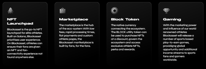 NFT는 최근 암호화폐 경제를 주도하고 있습니다. Blockasset은 특히 스포츠 팬들을 위한 플랫폼입니다. Blockasset은 선수가 검증한 NFT 플랫폼 및 생태계로 팬들을 이전과는 다른 방식으로 좋아하는 선수와 연결시킵니다. 독점적인 선수 콘텐츠, 실제 NFT 유틸리티 및 커뮤니티 거버넌스의 힘을 활용하여 Blockasset은 선수와 스포츠 팬 모두를 위한 플랫폼을 만들고 있습니다.
