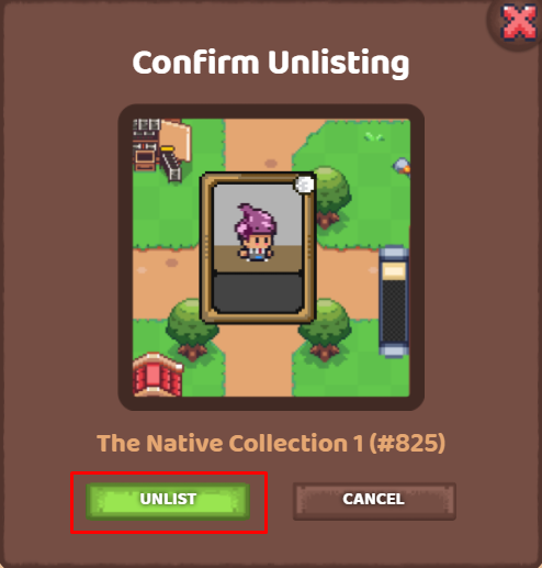 스텝 2 - 상장 해제를 승인하기 위해 ‘Unlist’를 클릭합니다. Metamask 트랜잭션이 나타나면 ‘Confirm’을 클릭합니다.
