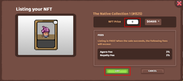 스텝 2 - ‘NFT Price’ 아래 원하는 상장 가격을 입력하고 ‘List’를 클릭합니다.