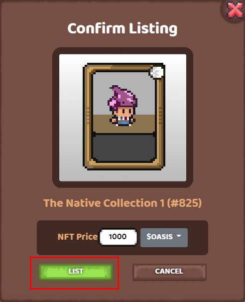 스텝 3 - ‘List’를 클릭합니다. Metamask 트랜잭션이 나타나면 ‘Confirm’을 클릭합니다.