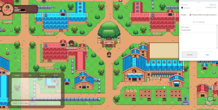 스텝 1 - Projectoasis.io에 접속합니다. ‘Hello! Click me to play the game’ 대화상자를 클릭하세요.