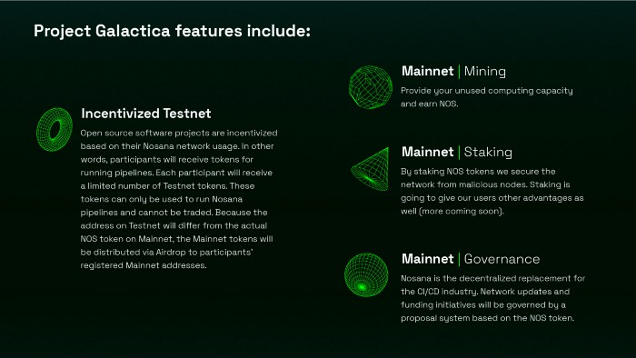 Nosana의 Project Galactica는 커뮤니티를 위한 기능 모음을 제공합니다. 또한 로드맵에 표시된 대로 인센티브화된 테스트넷을 기대할 수 있습니다!