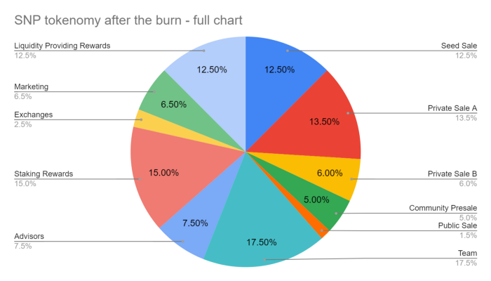 구입한 토큰은 소각될 것이며, 이는 토큰 디플레이션에 더욱 영향을 미치고 SNP 토큰의 총 공급량을 더욱 줄일 것입니다.