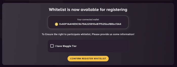 이 단계에서 Waggle이 자동으로 당신의 현 KYC 및 티어 상태를 확인한 뒤, 이에 맞는 화이트리스팅 프로세스로 안내합니다.