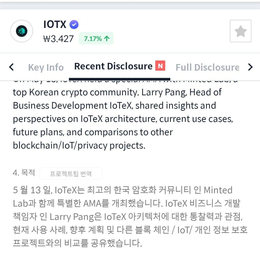 어제 있었던 IOTEX와의 AMA가 쟁글 공시에 등록될 정도로 민티드랩이 국내 암호화폐 계에 화두가 되고 있습니다.