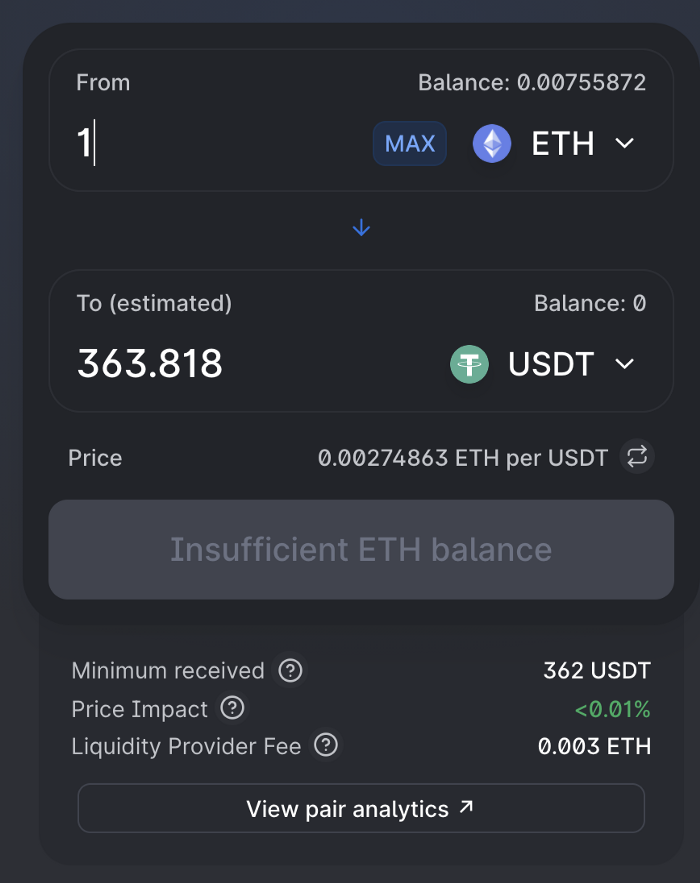 - Uniswap은 입력한 ETH 금액에 대해 받을 POLS 토큰 금액을 자동으로 계산합니다.