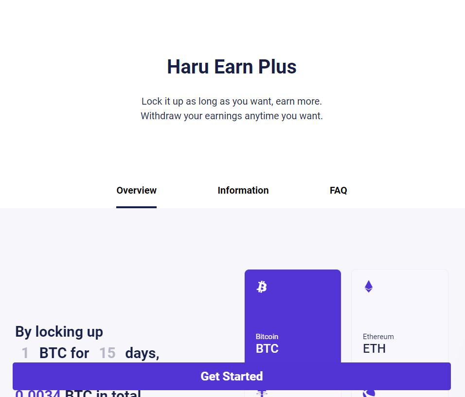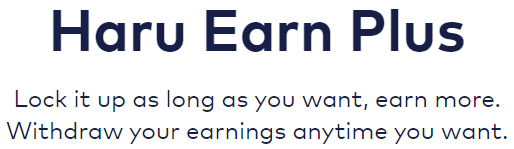 Haru Earn Plus는 투자자의 자산을 락업(Lock-up)하여 Haru Earn보다 더 높은 수익률을 발생시킬 수 있으며 예금 가능 자산은 Haru Earn과 같습니다.