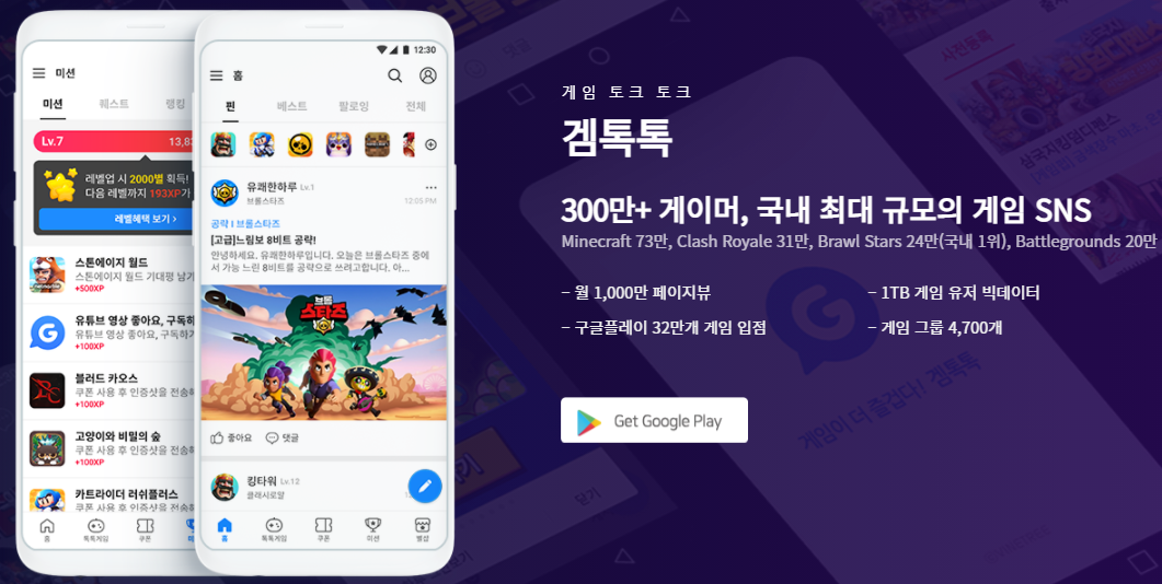 루데나 프로토콜의 첫 번째 DApp으로 런칭될 게임 소셜미디어 애플리케이션 "겜톡톡"은 현재 약 300만 명의 누적 회원을 확보하고 있으며, “겜톡톡”을 시작으로 게임 생태계 플랫폼을 만들어가고 있습니다.