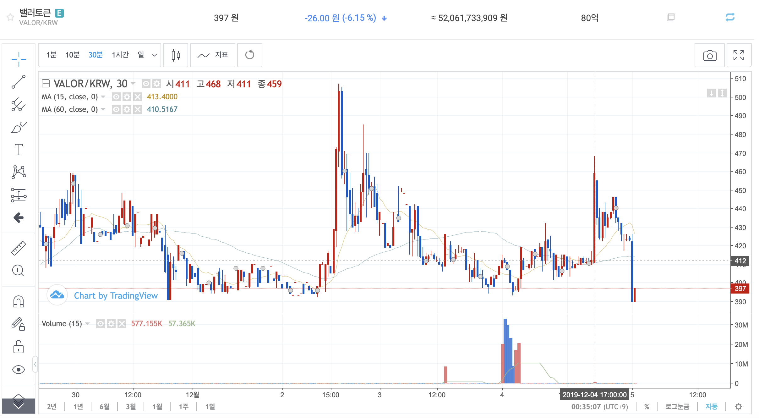 2019-12-04 17:04:38에 이벤트 공지하자마자 밸러 토큰은 떡 상하였습니다.