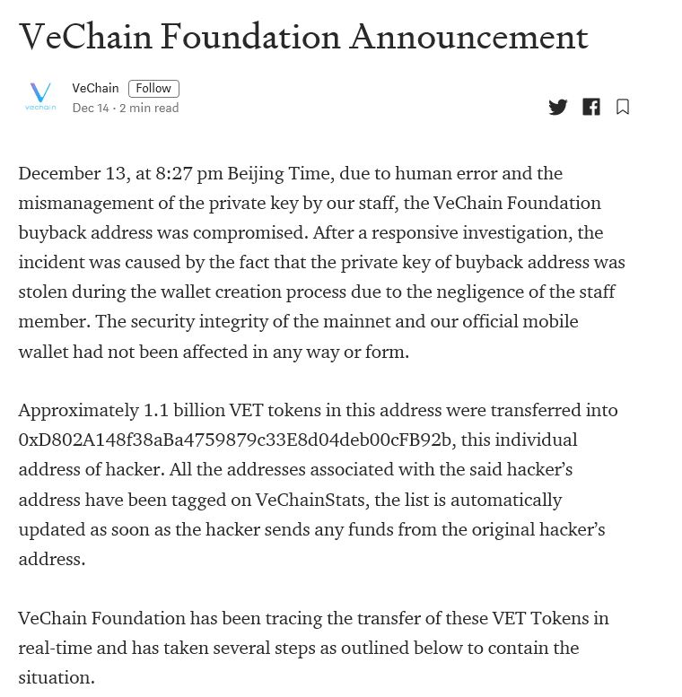 - 그로 인해, 11억개의 VET 토큰이 해킹을 당했습니다