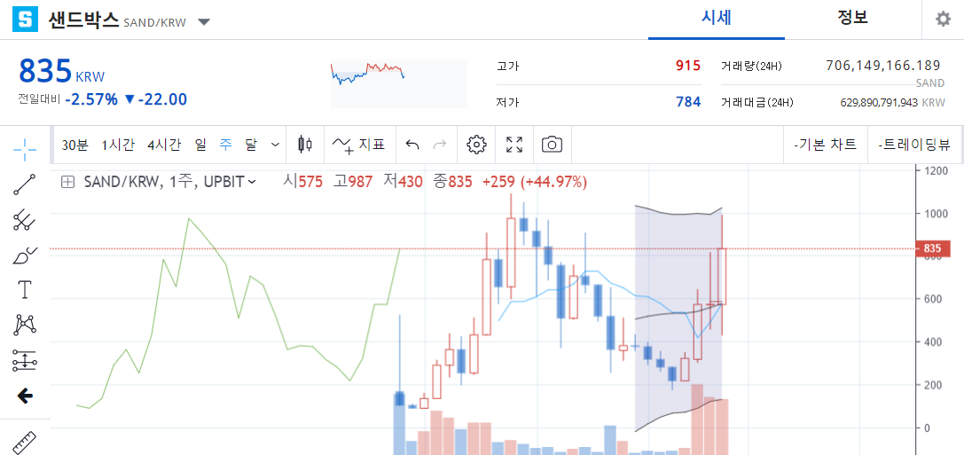 다만 최근 엑시인피니티의 가격 상승과 함께 플로우(FLOW), 샌드박스(SAND) 같은 NFT 코인들의 상승세가 크게 나오고 있는만큼 코인버프도 NFT 분야라는 점을 잘 이용해서 가격에 긍정적인 영향을 미칠 수 있을 지 지켜보면 좋을 것 같습니다.